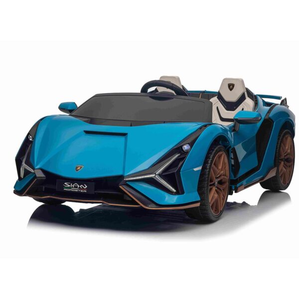 Our two seat Lamborghini Sián is fully licensed and a beautiful replica of the original, from the emblems on the seats to the sophisticated clean lines of the body this 12V ride on car is styled to the last detail, just kid sized.