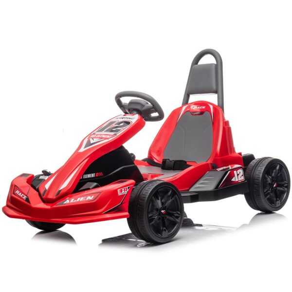 Make their track dreams come true with our Alien racer. This 12V go kart style ride on is a racers dreams come true, with its comfortable bucket seat plus safety belt and race style steering wheel, kids are going to love to go karting in this ride on.
