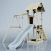 Supplied untreated the natural warmth of the wood is complimented by the muted colour palette of the accessories creating a climbing tower that can be personalised to go with any garden design.