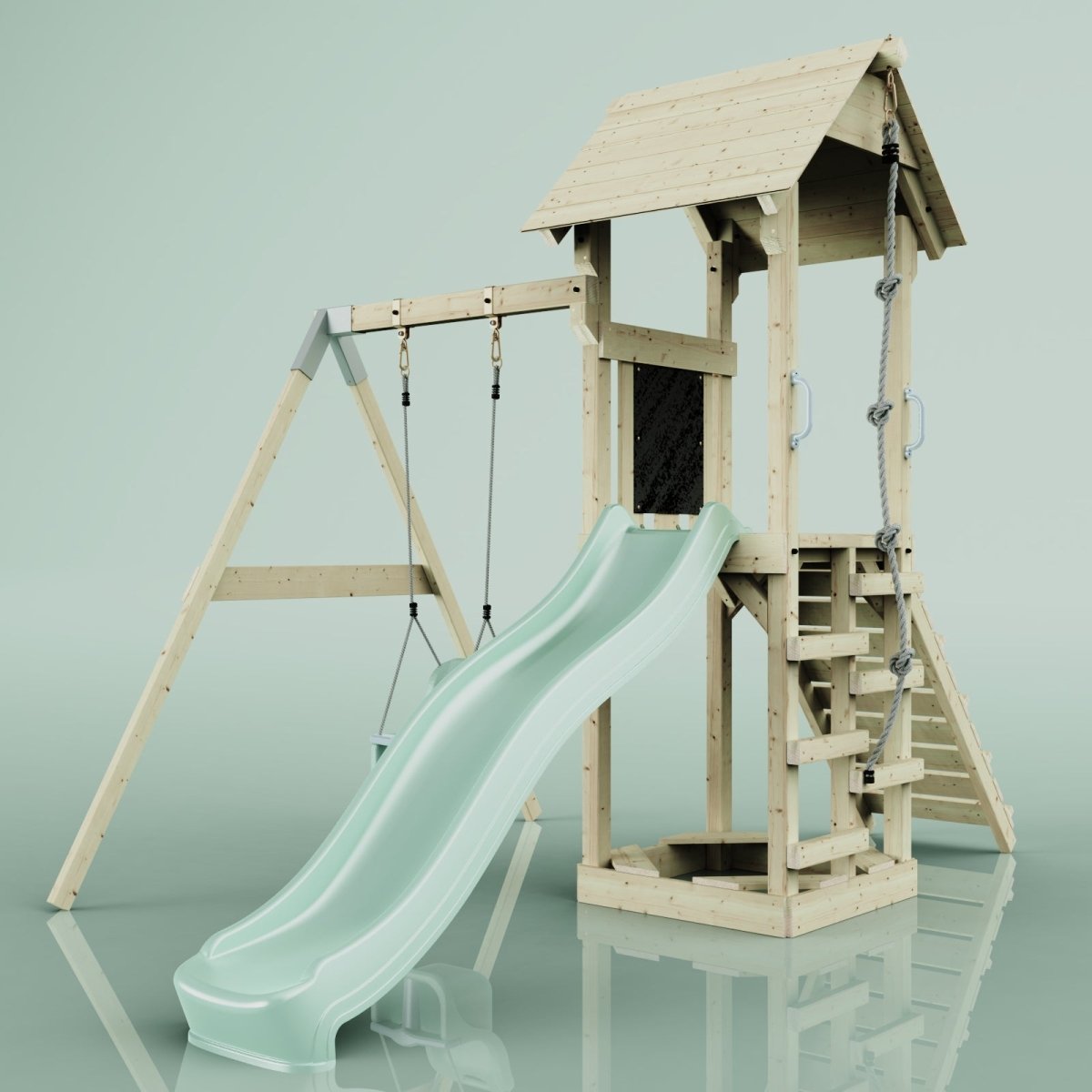 PolarPlay Tower Kids Wooden Climbing Frame – Swing Helka Sage